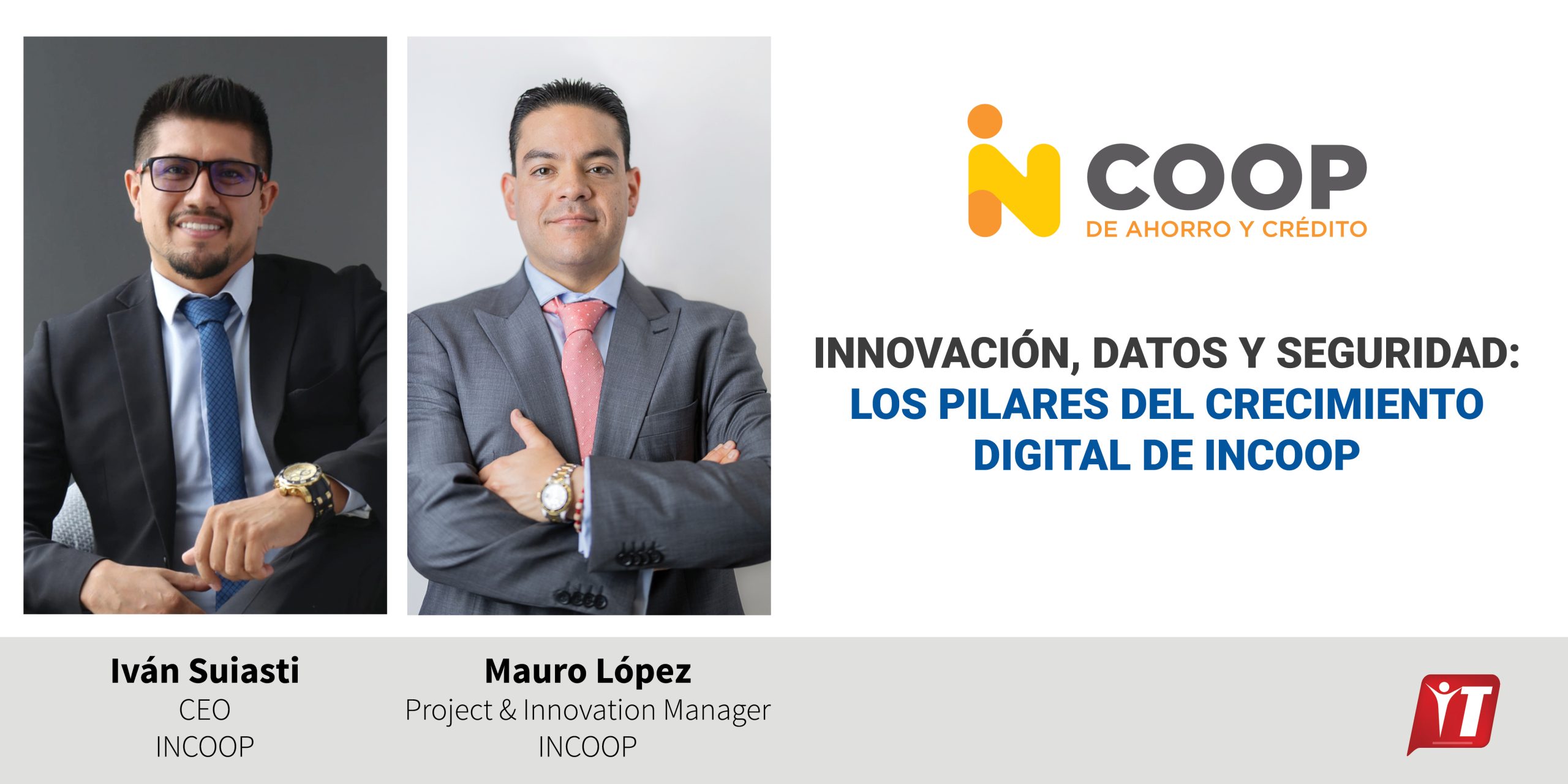Incoop es una cooperativa fundada en la parroquia de Ambatillo del cantón Ambato hace 18 años. En los últimos cuatro ha atravesado un proceso de innovación y cambio estratégico, liderado por una nueva gerencia desde hace 4años se incorporó una visión orientada a lo digital. Esta visión se ha materializado en el desarrollo de proyectos de innovación basados en tecnología, que le han permitido obtener reconocimientos como el Premio País en la categoría “Banca Móvil”, otorgado por Fintech Américas, y el primer lugar en la categoría “Bancos y Emisores” en TRUSTECH, el evento internacional más importante en soluciones de pago e identificación, realizado en París.