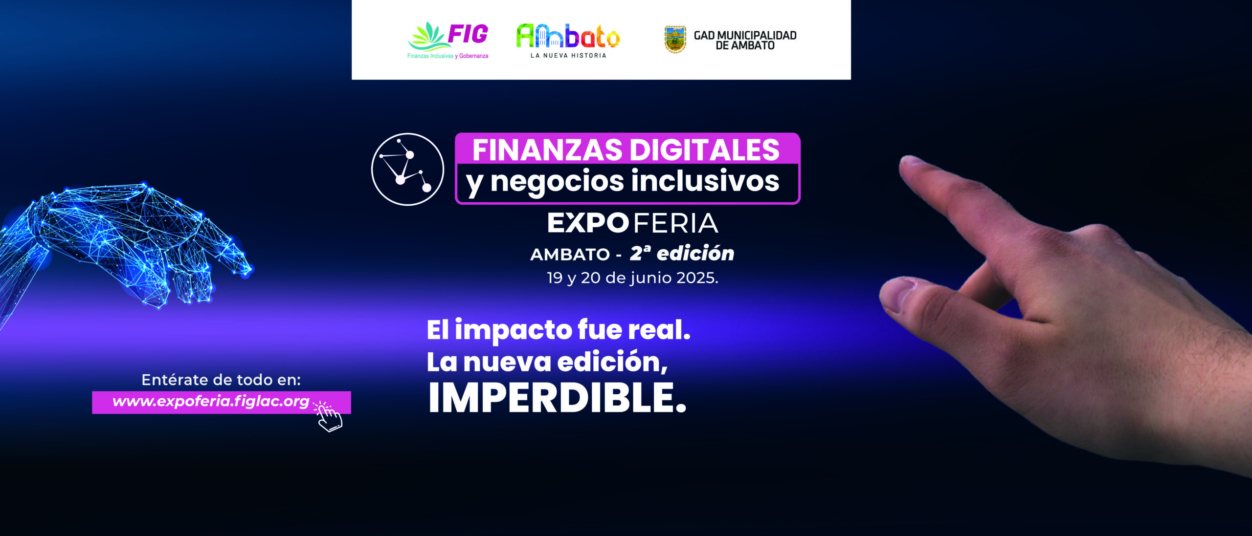 La Expo Feria Finanzas Digitales y Negocios Inclusivos, organizada por la Fundación Finanzas Inclusivas y Gobernanza (FIG) con el respaldo del GAD Municipal de Ambato, celebrará su segunda edición los días 19 y 20 de junio en la ciudad de Ambato.