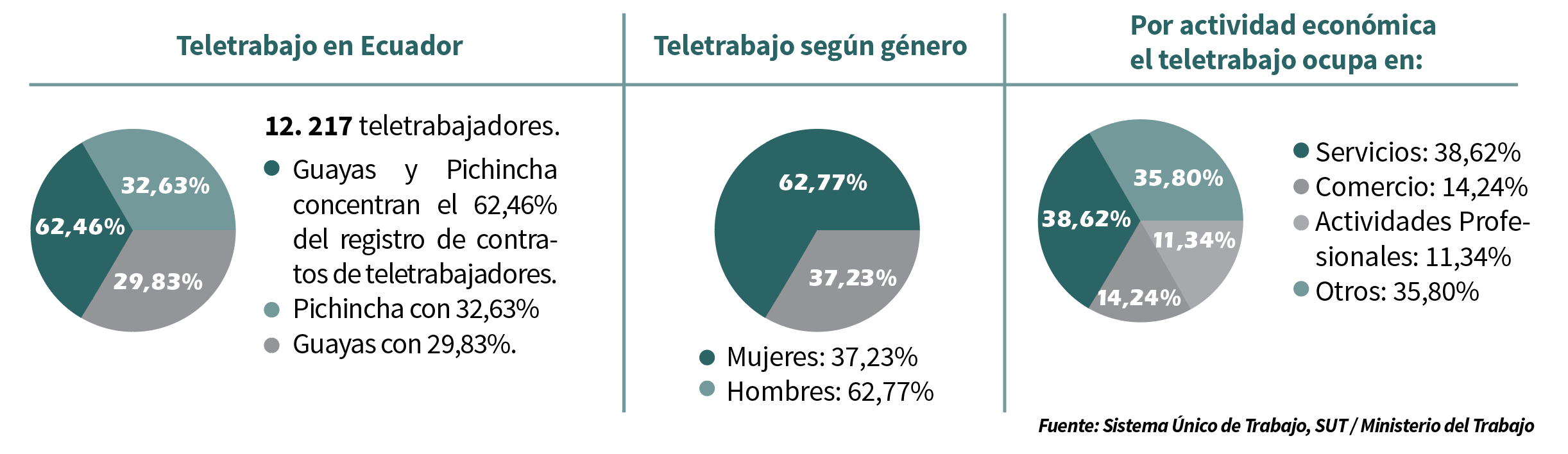 Las cifras de teletrabajo son bajas, dice Guerrero. En Ecuador apenas tenemos entre el 0.1% y el 0.2% de la población económicamente activa teletrabajando mientras que Colombia bordea el 4%. Sin embargo, es gran una oportunidad.